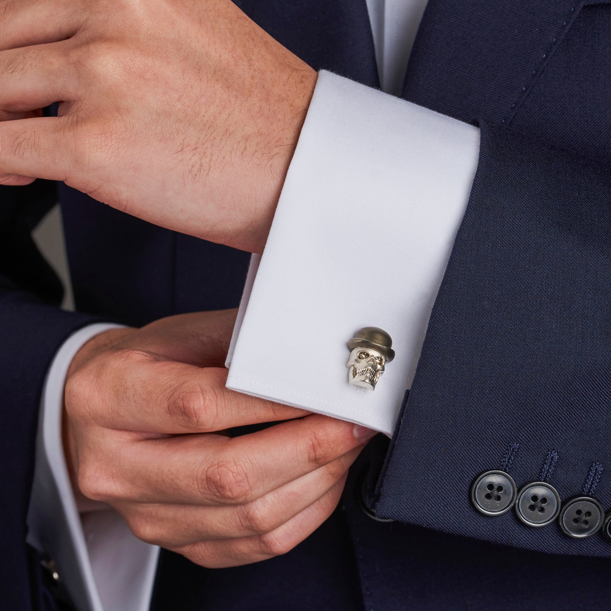 Diamond cufflinks most often feature small, round, white diamonds in the centre or border of a cufflink. These luxurious stones add a stunning finish to a pair of cufflinks, especially when offset against an onyx inlay or black enamel border. Other diamond cufflinks utilise princess-cut diamonds as part of their unique design, while we also use diamonds for the eyes in our iconic range of skull cufflinks.