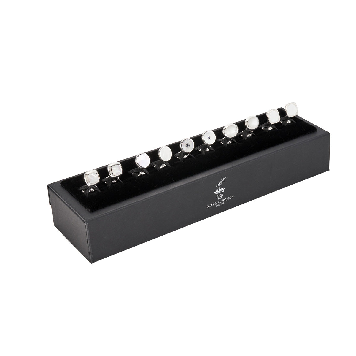 Mother of Pearl is the name given to the substance that forms the inner layer of the shell of some molluscs, like mussels and pearl oysters. Like pearls, mother of pearl has an iridescent effect, contributing to its distinct beauty and use in making unique jewellery pieces. While it is far less rare than pearl, mother of pearl gives our cufflinks an extra sparkle and sophisticated finish.