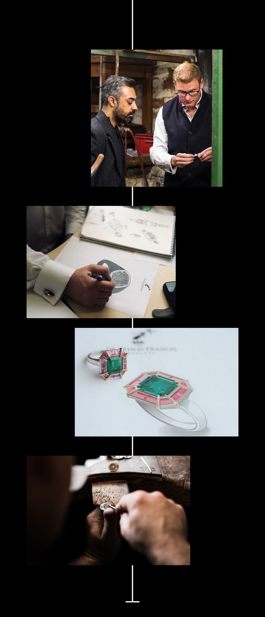The process of creating bespoke jewellery begins with the idea. From there, you will be introduced to one of our in-house designers who will have an initial discussion with you and then concept artwork is drawn up to show how the designers will interpret the ideas and the best way to express them through the piece of jewellery. These pieces are the most personal items that we produce and therefore we take great time an effort to ensure that you are completely happy with the design before we hand it over to one of our goldsmiths.