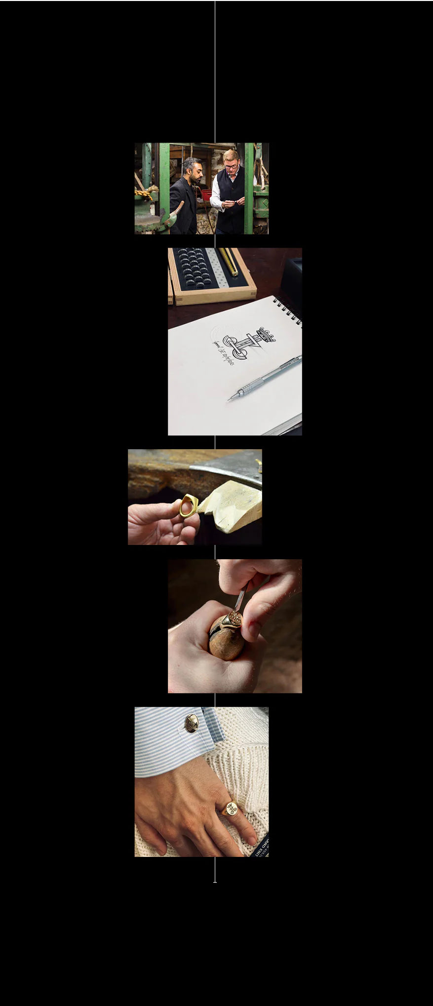The process of creating a bespoke signet ring begins with purchasing your ring and receiving your exclusive invitation to partake in its creation in our factory.