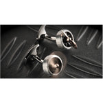 These aviation designs are made from aircraft grade aluminium. With internal ball bearings, the black cooling blades move as the highly polished, rose gold blades spin around. Even the rivets and joining panels have been laser detailed to the highest precision on the outer aluminium cases. These pilot themed cufflinks are sure to rule your sleeves!