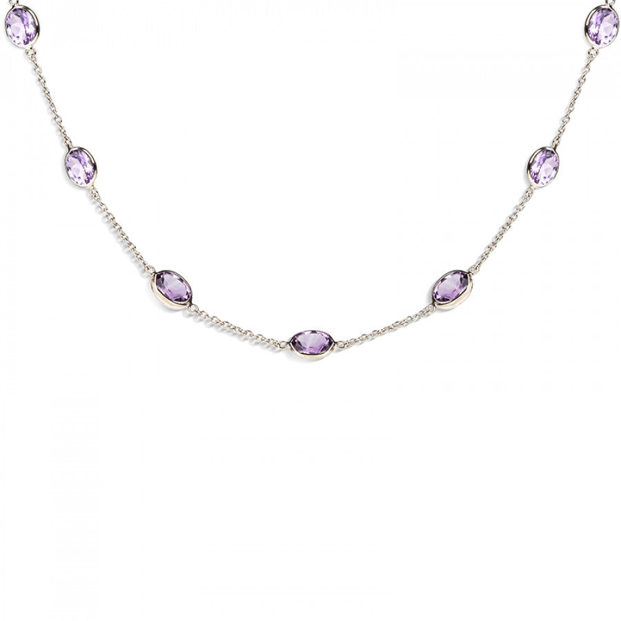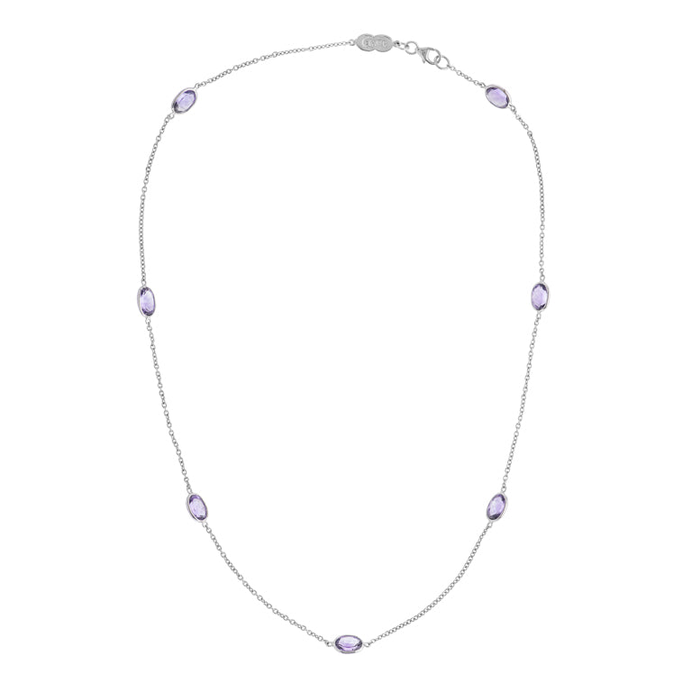 18ct white gold amethyst necklace comprises of 7 oval amethysts.