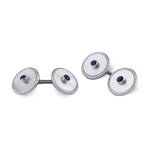 18ct White Gold Mother of Pearl Cufflinks With Patterned Border and Sapphire Centre