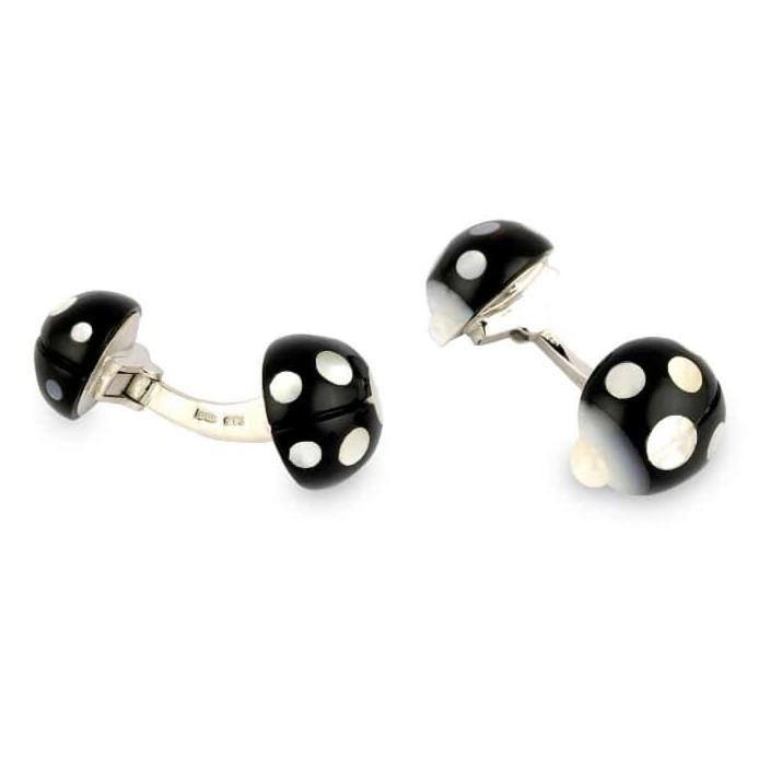 18ct White Gold Onyx And Mother of Pearl Ladybird Cufflinks