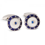 Out of stock18ct White Gold Round Cufflinks with Blue Border & Mother of Pearl and Sapphire Centre