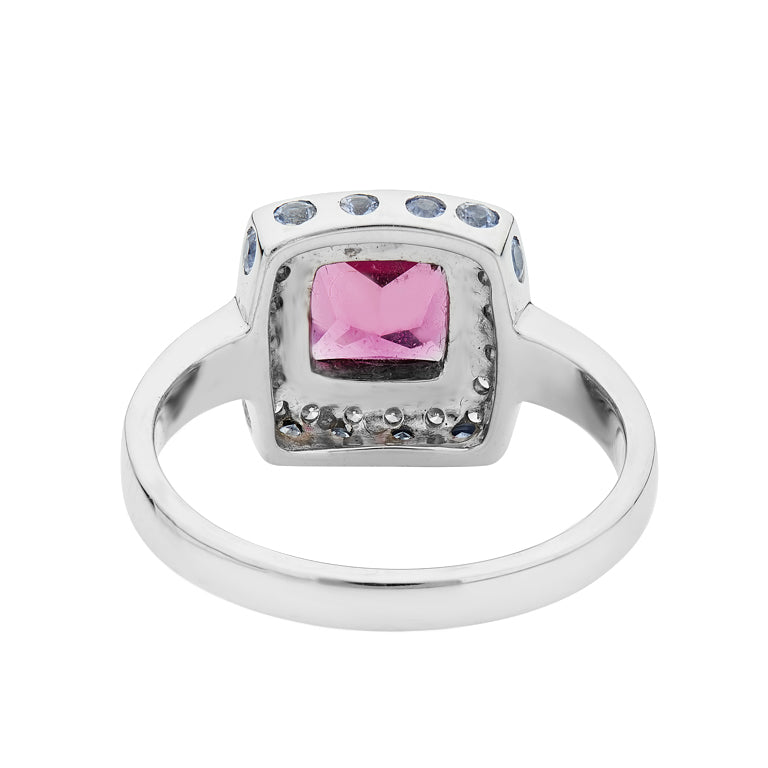 18ct White Gold Rubellite And Diamond Ring with Blue Sapphires