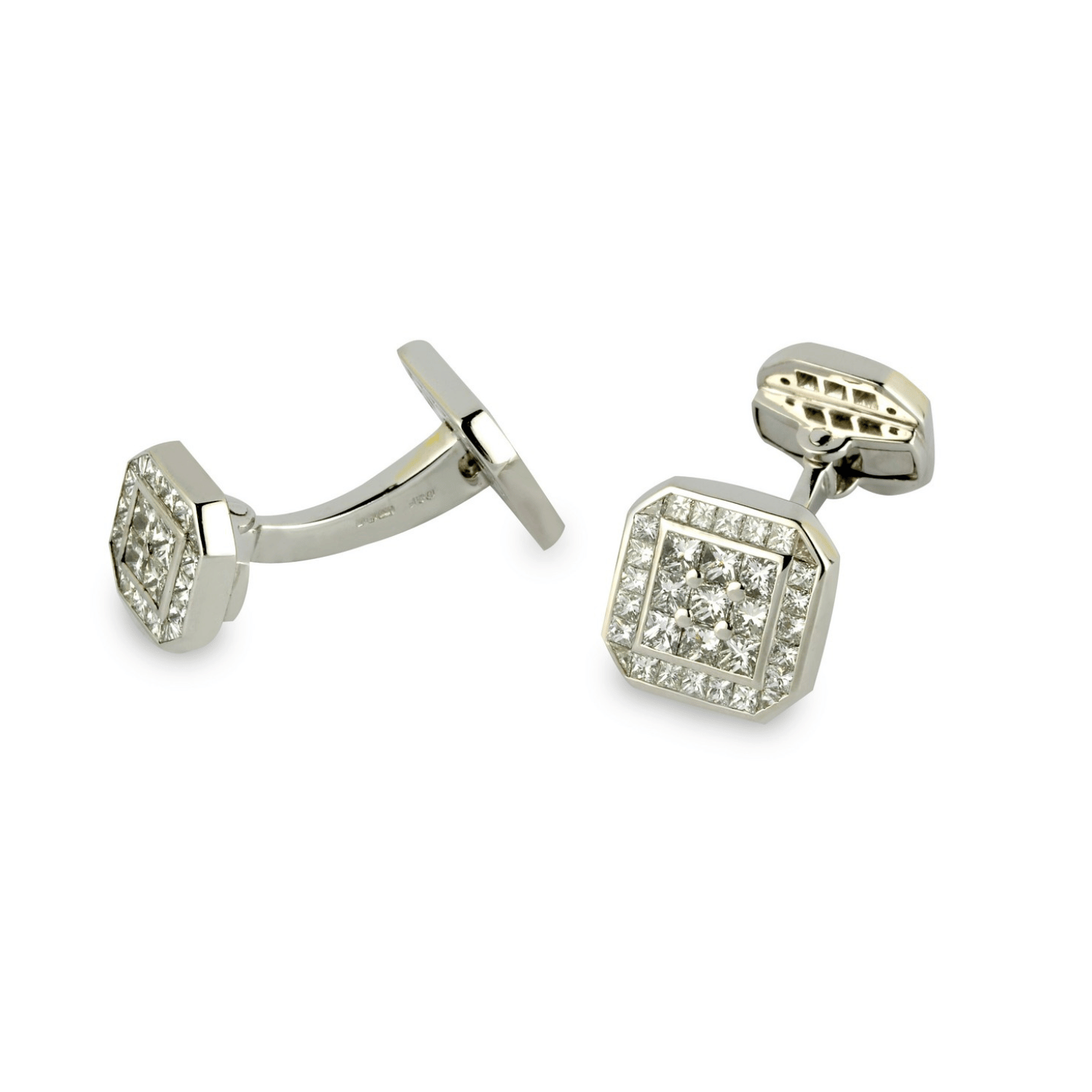 Out of stock18ct White Gold Square Cufflinks with Diamonds