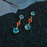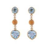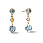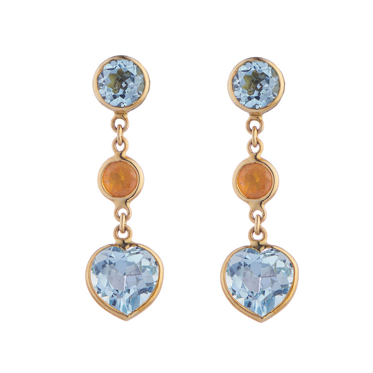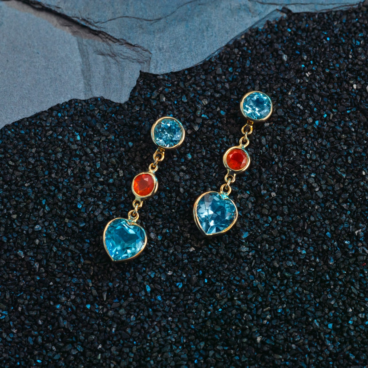 18ct Yellow Gold Blue Topaz And Fire Opal Drop Earrings