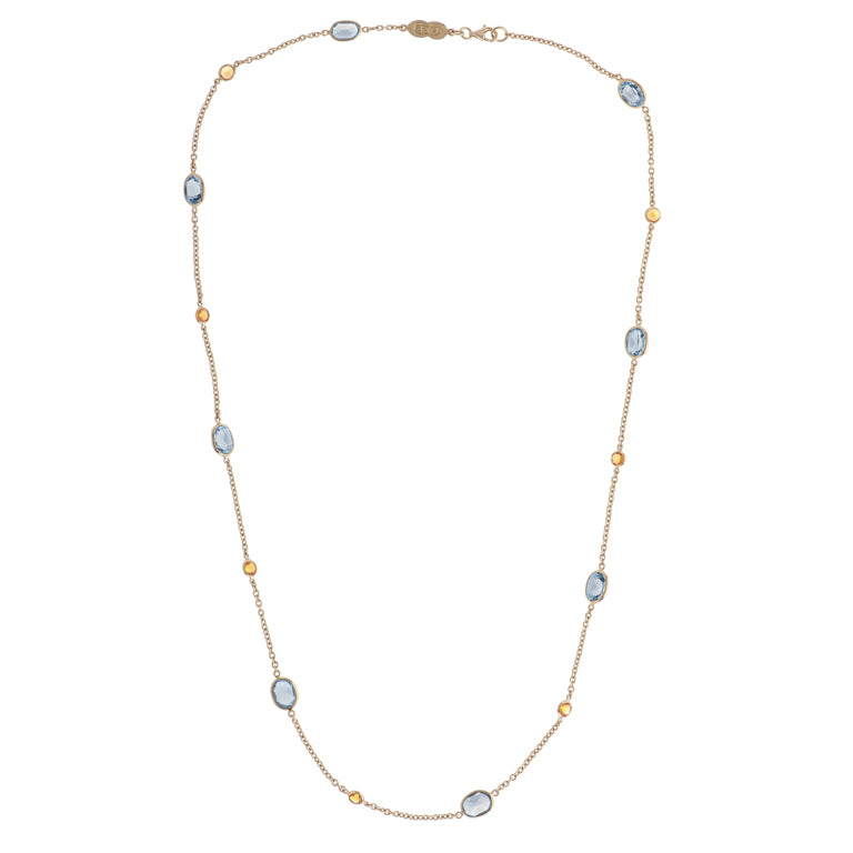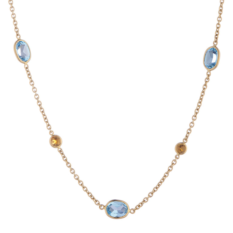 18ct Yellow Gold Blue Topaz and Fire Opal Necklace
