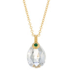 18ct yellow gold necklace combines a briolette cut crystal and cabochon emerald accent.