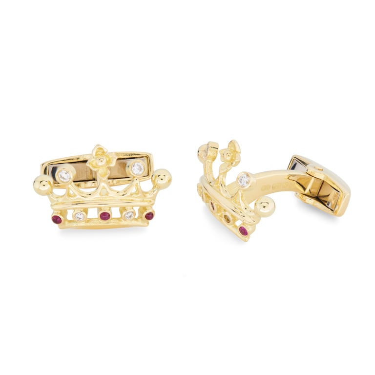 18ct Yellow Gold Ruby and Diamond Crown Cufflinks