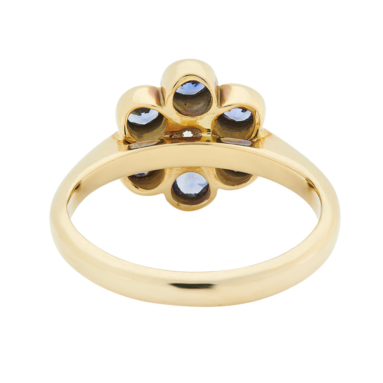 18ct Yellow Gold Sapphire and Diamond Cluster Ring
