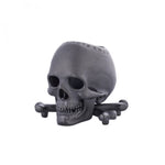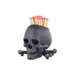 Skull candle holder secures either matchsticks or scented candles finished with a matt black, anodised titanium, plated skull head.