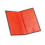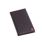 Leather burgundy large gents cheque book wallet with skull detailing.
