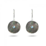 Grey Mother-of-Pearl Dreamcatcher Earrings with Aquamarine Gem