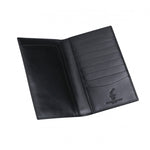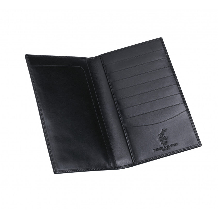 Keep your chequebook and cards together with this stylish, leather chequebook wallet. Made from a genuine leather, this slim contemporary black wallet slips into your jacket pocket with ease.