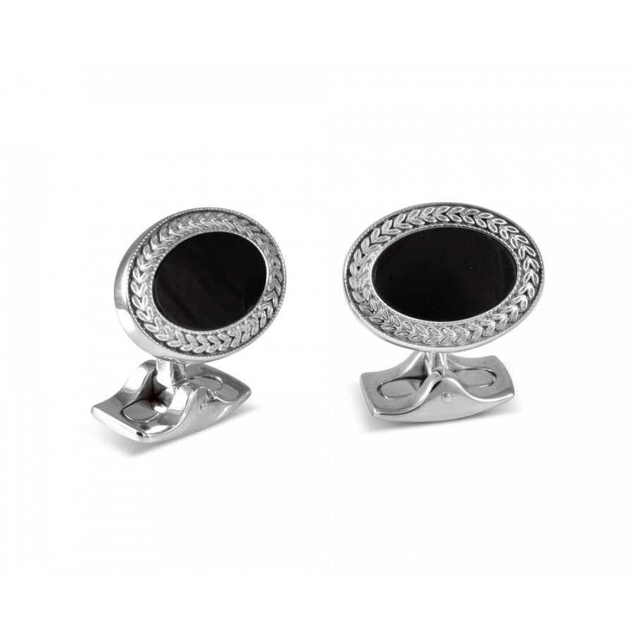 Bring out your dark side! Hand-cut, rich black onyx inlays give these classic oval cufflinks an edgy look, the perfect black tie accessory.