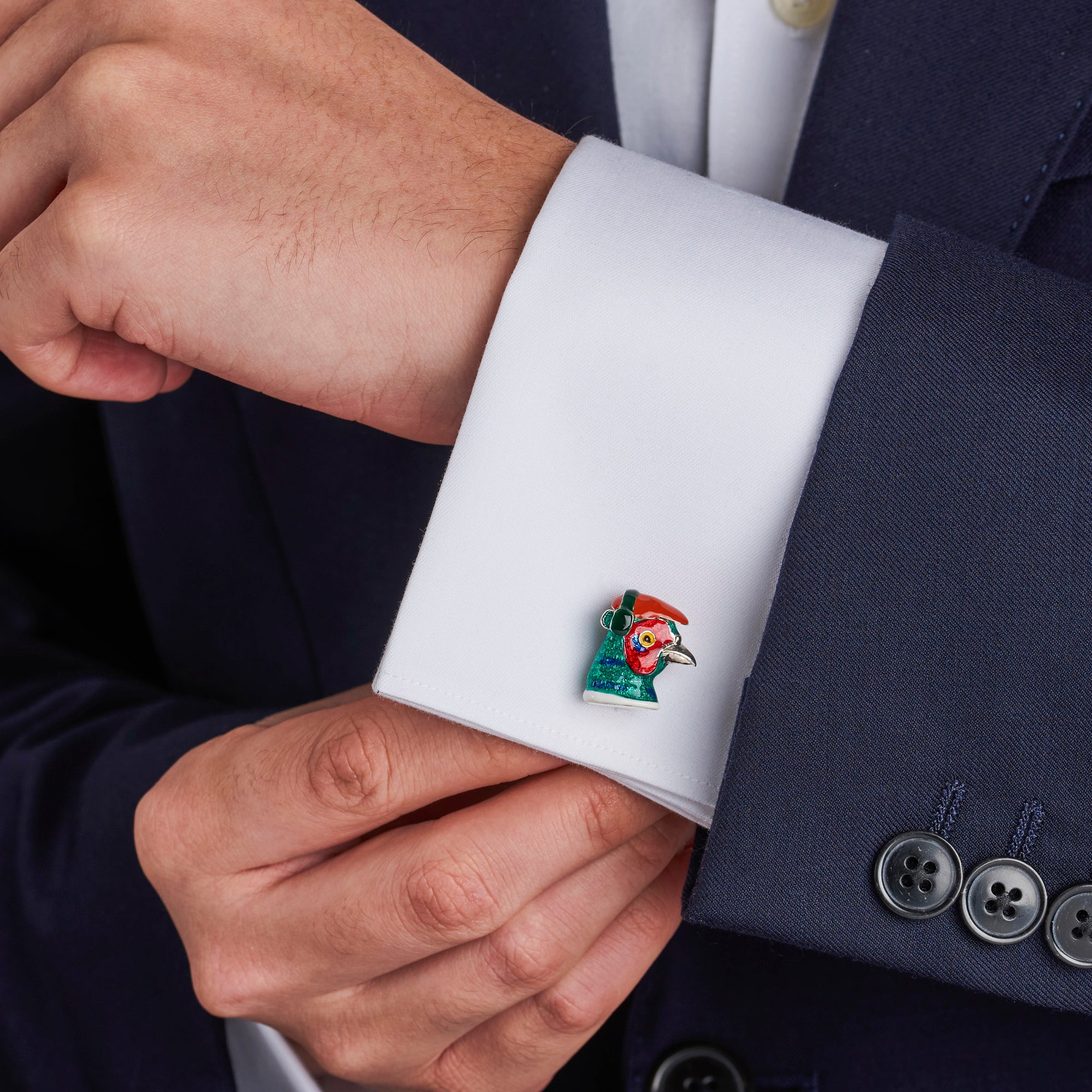 Sterling Silver Pheasant Cufflinks with Cap & Ear Defenders.