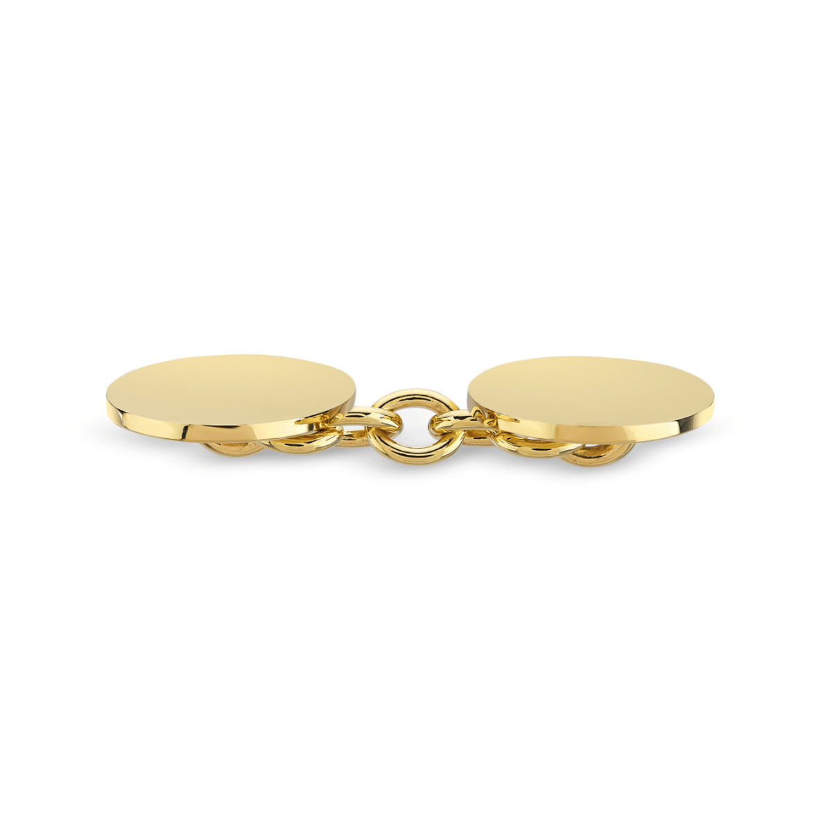 These stunning, yellow gold oval cufflinks have been made from the finest 18ct gold. With a classic chain fitting, they are a timeless addition to any wardrobe and cufflinks collection.