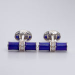Sterling Silver Blue Enamel & White Spinel Centre Bar Cufflinks