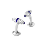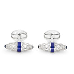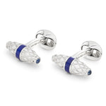 Sterling Silver Fancy Bar Cufflinks With Royal Blue Enamel Centre And Sapphire Ends