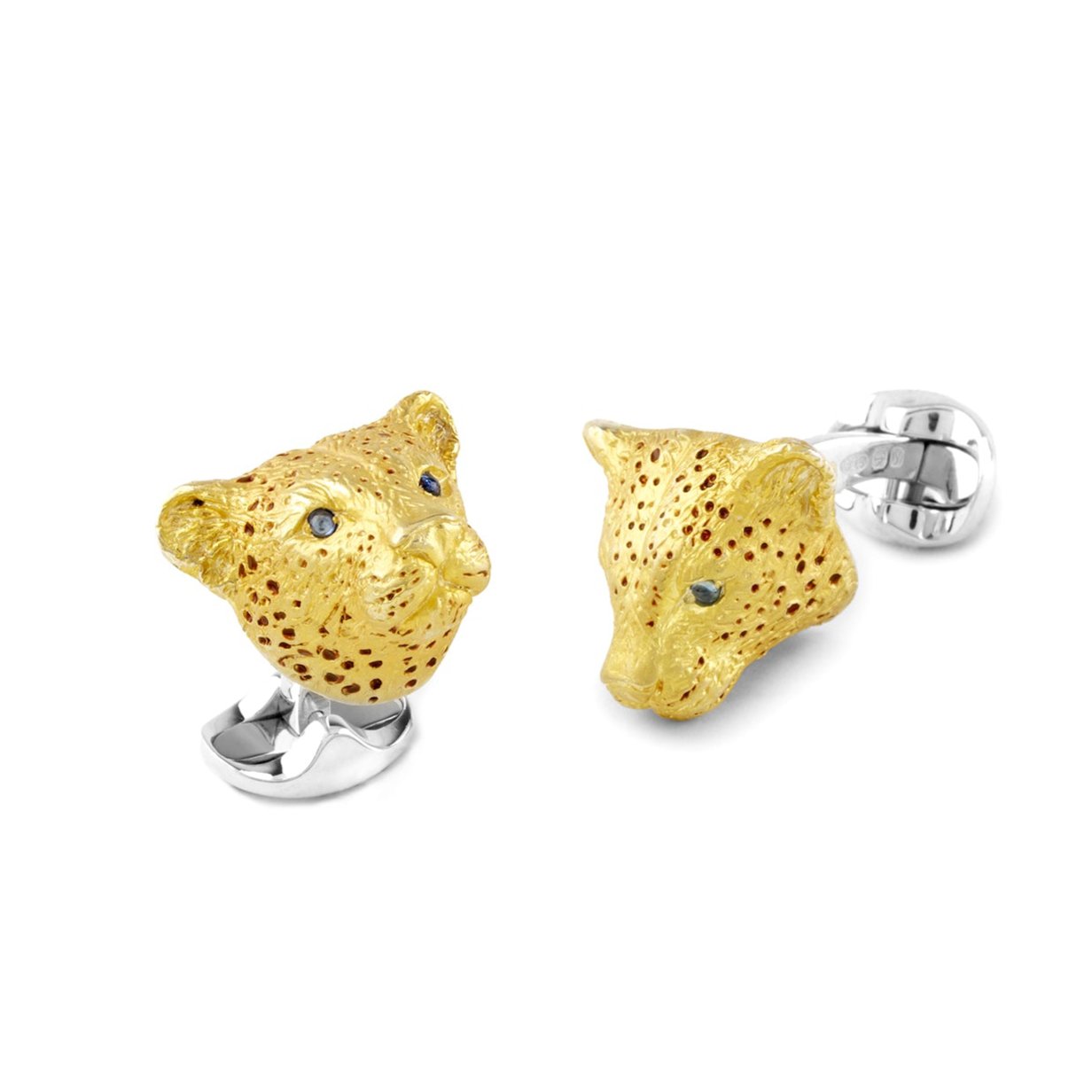 Sterling Silver Enamel Leopard with Sapphire Eyes Cufflinks
