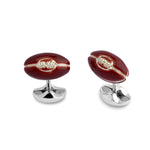 Silver Rugby Ball Cufflinks with Brown Enamel