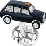 These sterling silver taxi cufflinks are hand-enamelled with realistic black and orange detail. Inspired by the traditional London black cabs, these cufflinks are one way to take a taxi in style!