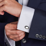 Whether it's a charity dinner or a client lunch, for a classic look with a subtle hint of luxury, these sterling silver, black spinel oval cufflinks are the perfect finishing touch.