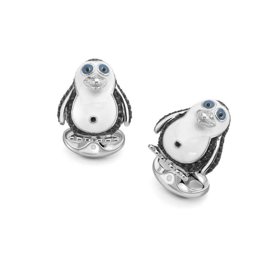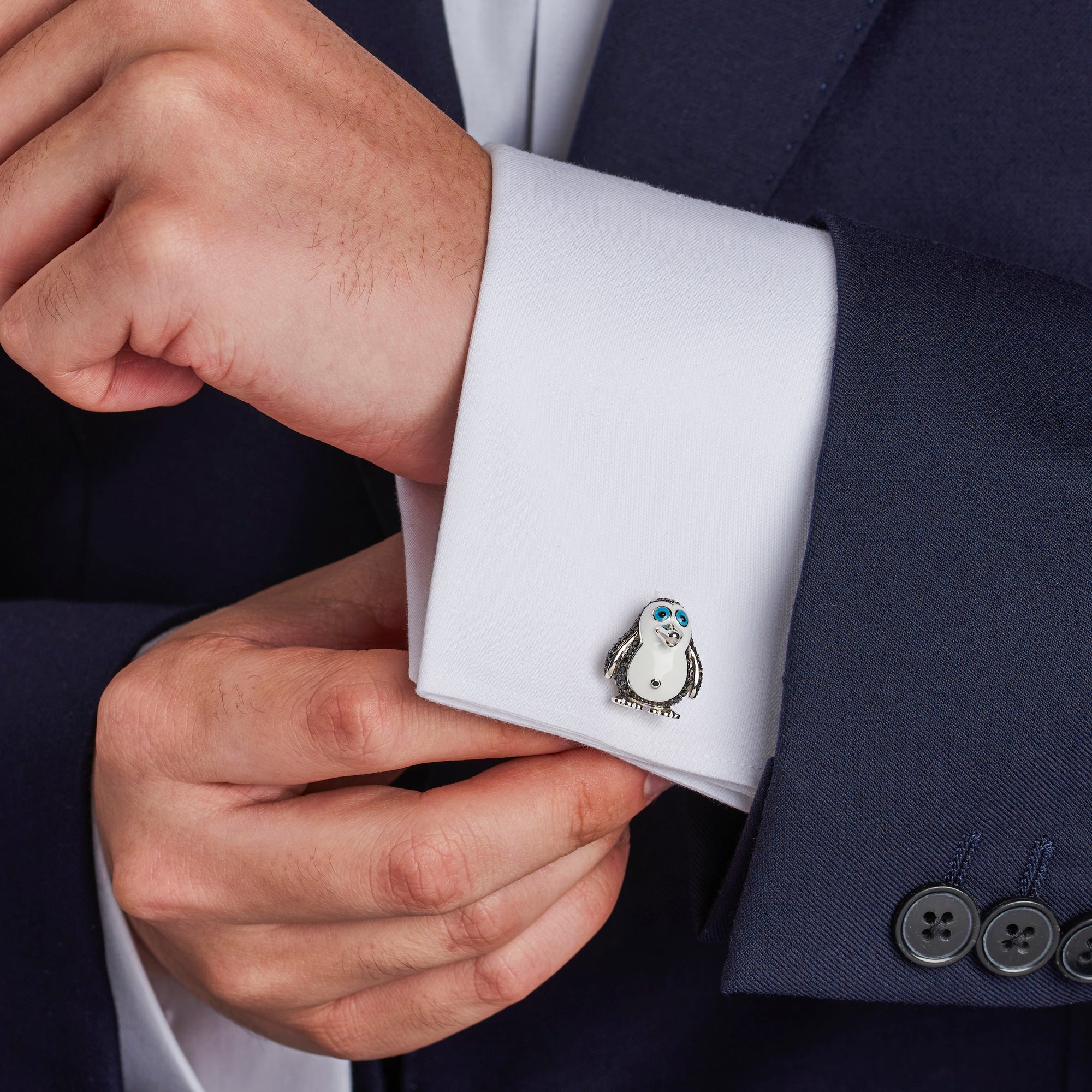 These cufflinks are perfect for all penguin lovers. Our classic penguin design, with hand-enamelled bodies and bright blue eyes have been given a splash of luxury with the addition of semi-precious black spinel gem stones.