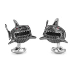 These 'jawsome' sharks are the epitome of affordable luxury. Encrusted with black spinel stones and piercing ruby red eyes, they're sure to add sparkle to your cuff. These sterling silver shark cufflinks are perfect for tough cookies in deep water everywhere.