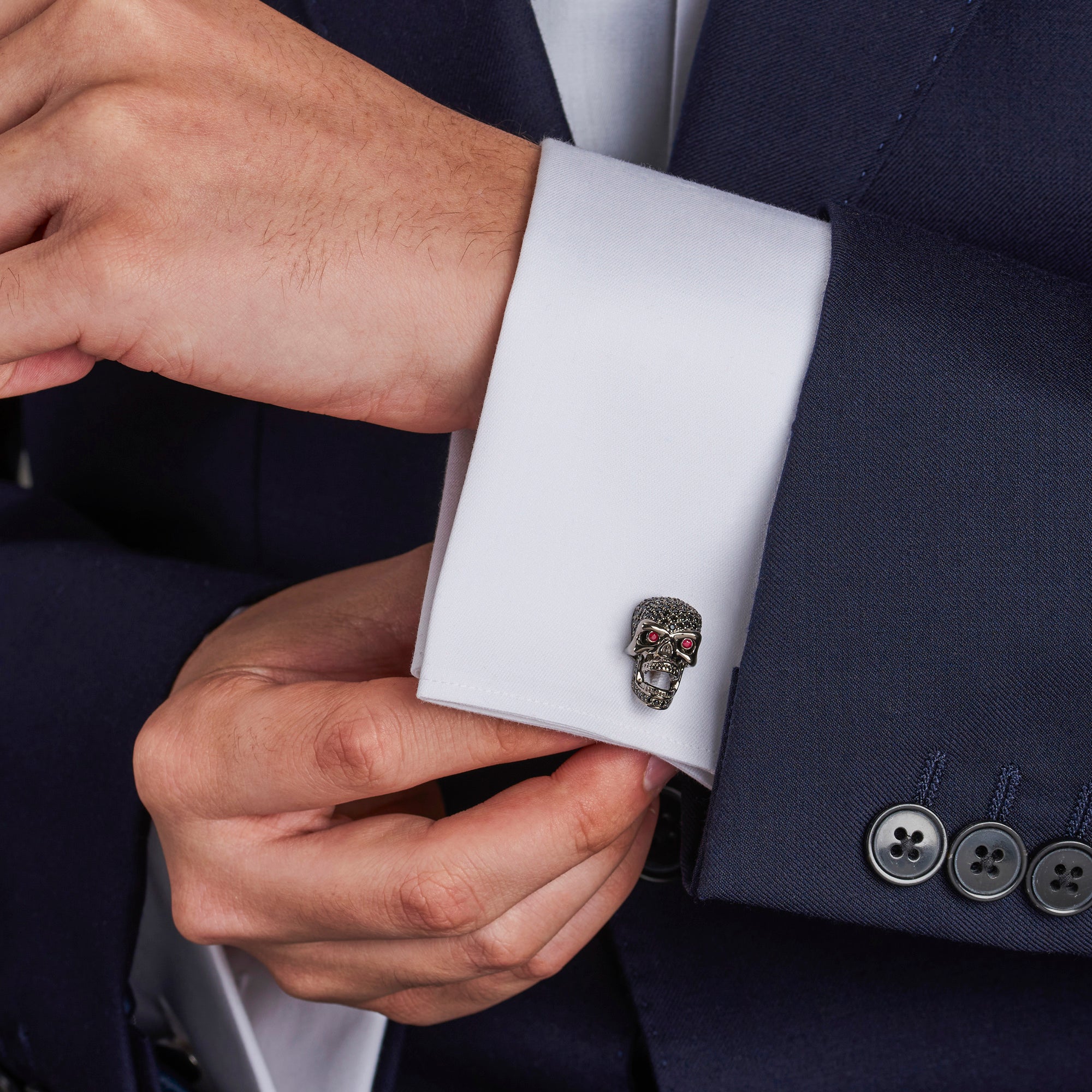 The Deakin & Francis legendary skull design is popular with celebrities and city slickers worldwide. These black spinel skull cufflinks are opulent luxury.