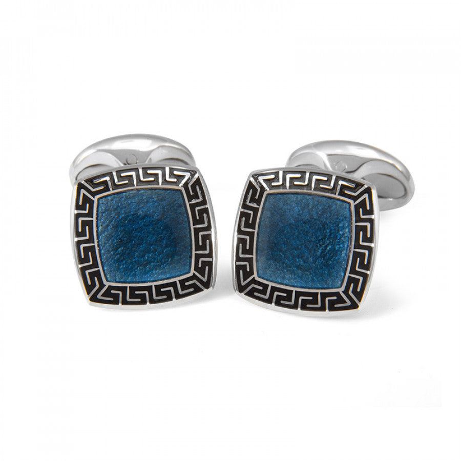 Made from sterling silver, these cushion shaped cufflinks have been hand-enamelled with a rich Bentley blue centre and finished off with an edgy black patterned border - perfect for the modern, stylish man.