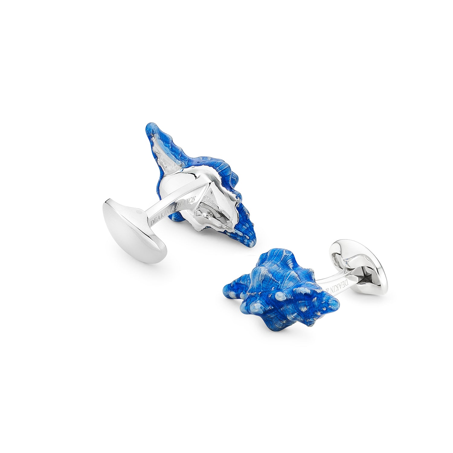 Sterling Silver Blue Enamel Seashell Cufflinks