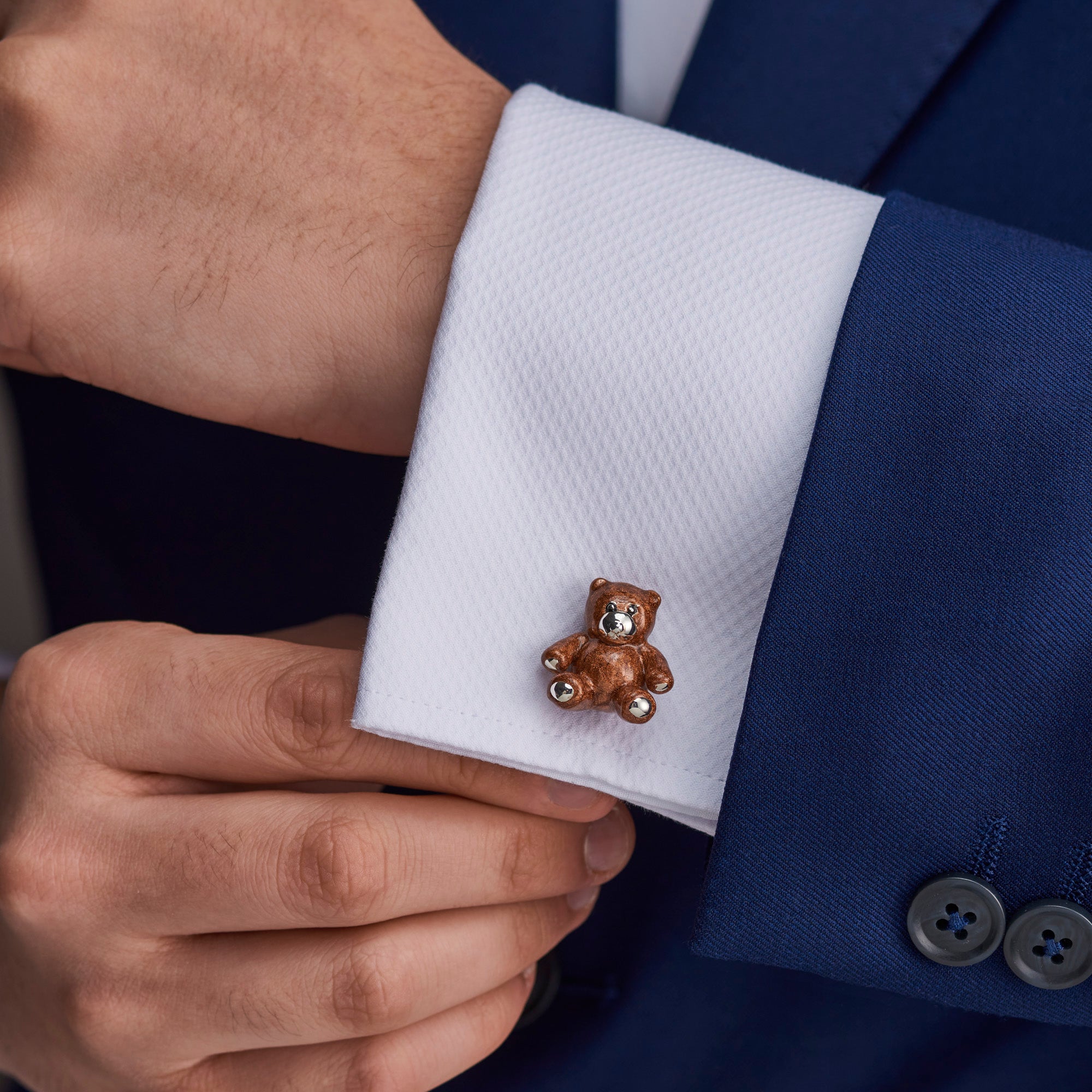 These sweet sterling silver teddy bear cufflinks are the perfect gift for a loved one. Made from sterling silver, these cufflinks have been enamelled with brown detailing to bring these teddies to life. Show your soft side with these cute cufflinks.