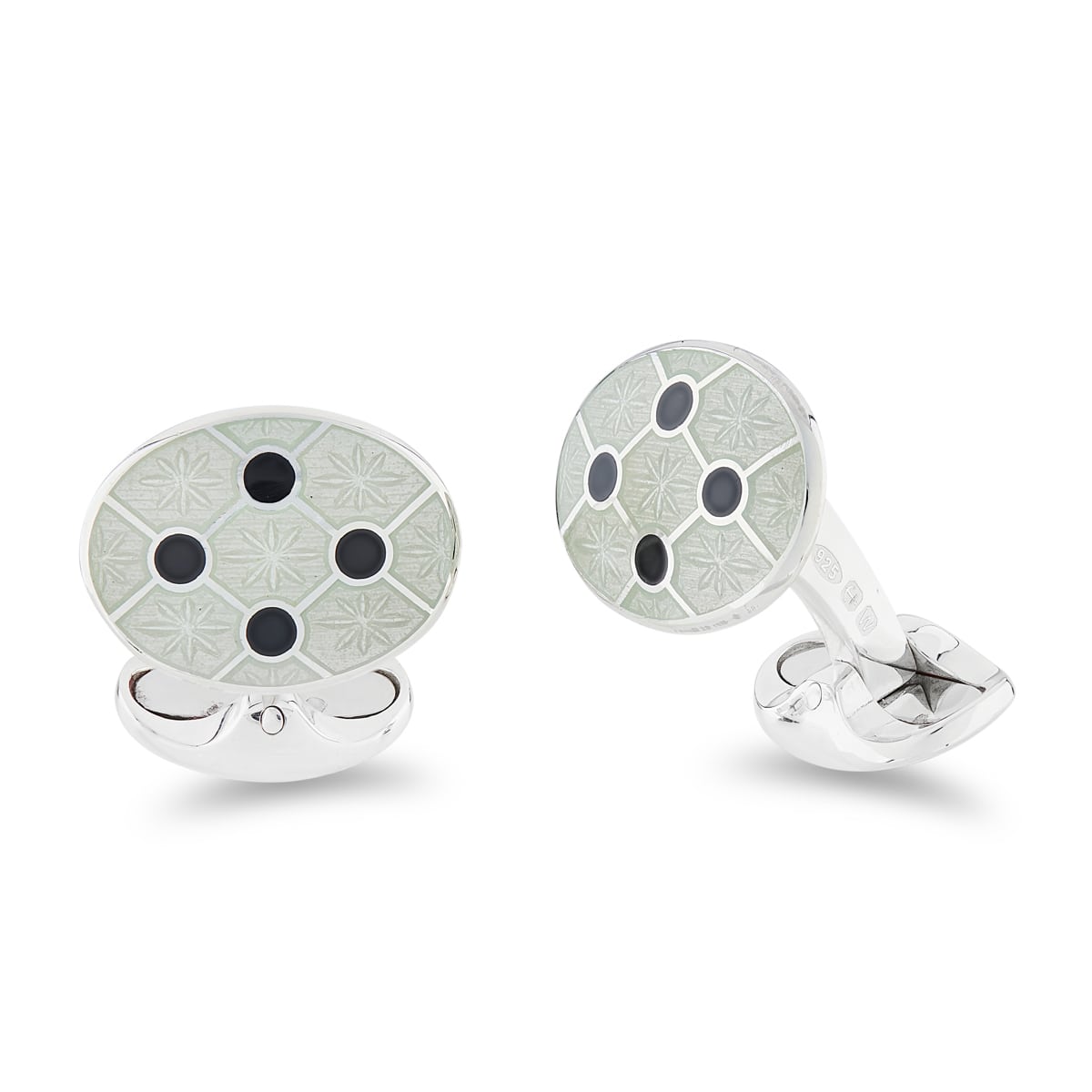 Sterling Silver Clear Enamel Cufflinks With Black Enamel Dot Design