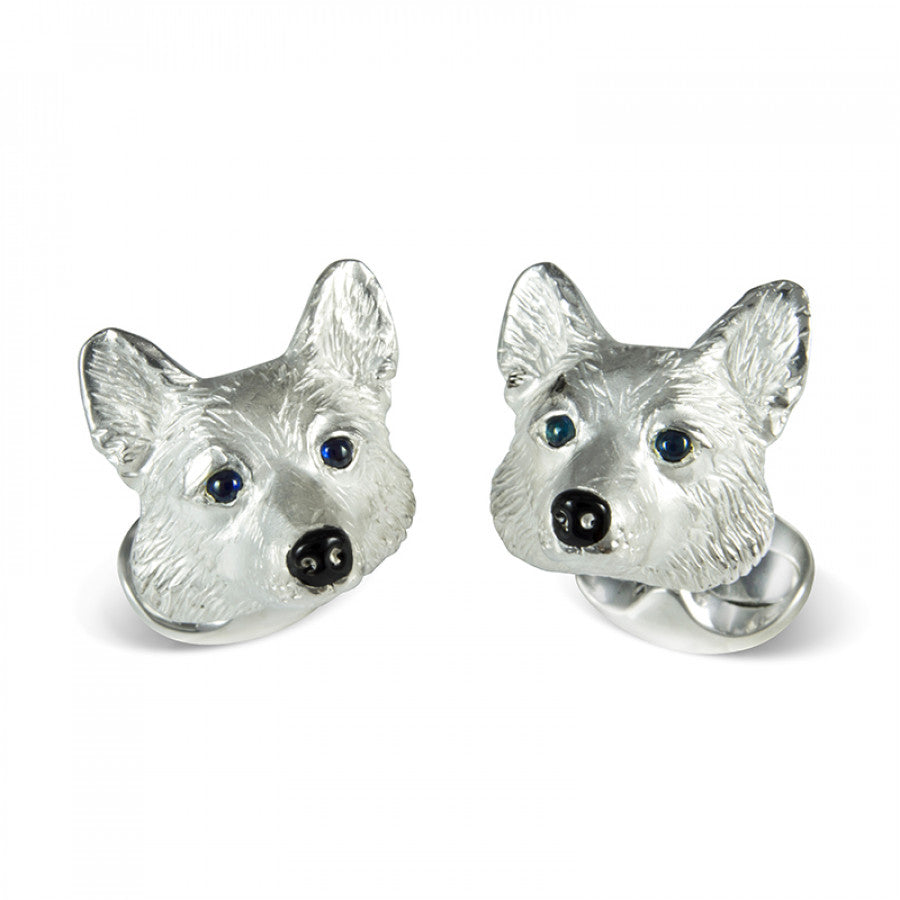 Corgi is a welsh word for 'Dwarf Dog' and they get this name from their stocky build and short stumpy legs. A very British dog, Corgis are famed for being the preferred breed of our beloved Royal Family. Queen Elizabeth has owned more than 30 in her lifetime and If they are good enough for the Queen, they are good enough for you! These charming Corgi Cufflinks feature deep blue cabochon sapphire eyes, pointy ears and a fox-like face and will add a touch of royalty to any outfit
