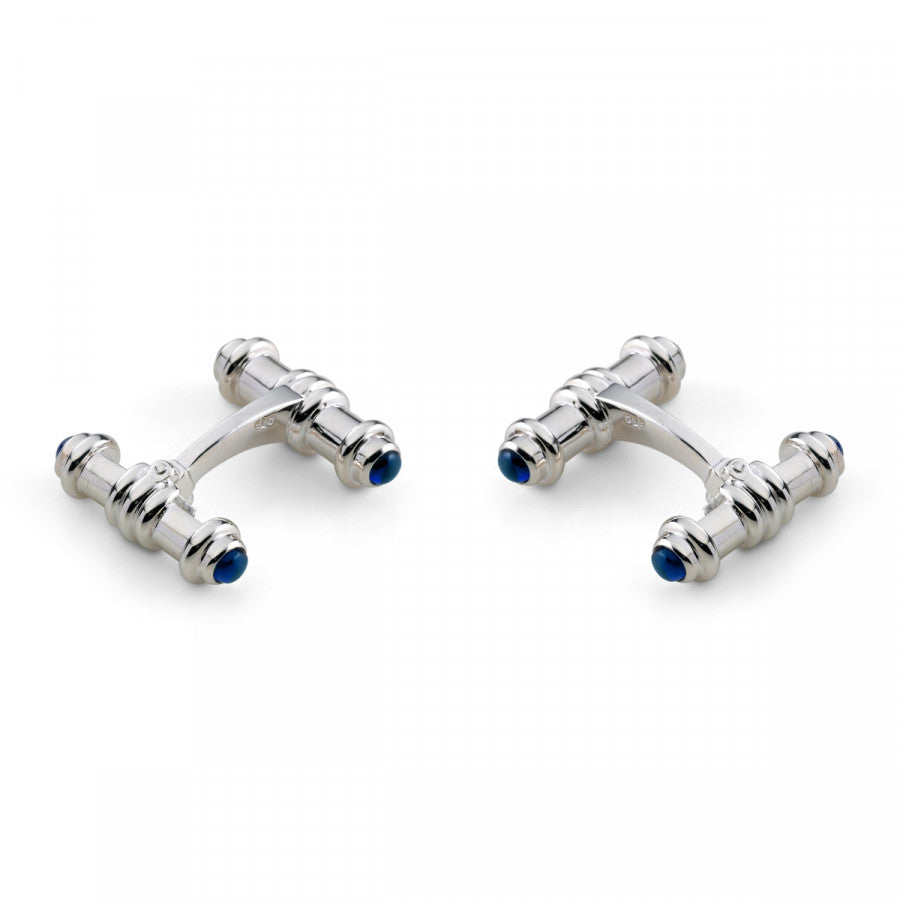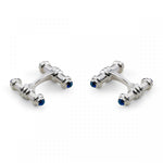 Sterling Silver Dumbbell Cufflinks with Cultured Sapphire Ends