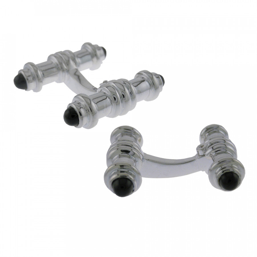 Sterling Silver Dumbbell Cufflinks with Onyx