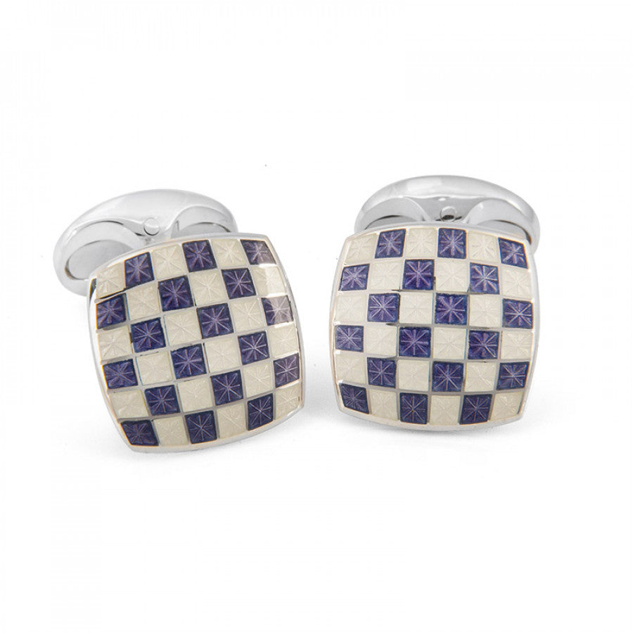 Sterling Silver Enamel Checkerboard Cufflinks in Purple