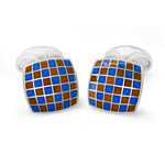 Sterling Silver Enamel Checkerboard Cufflinks in Red and Blue