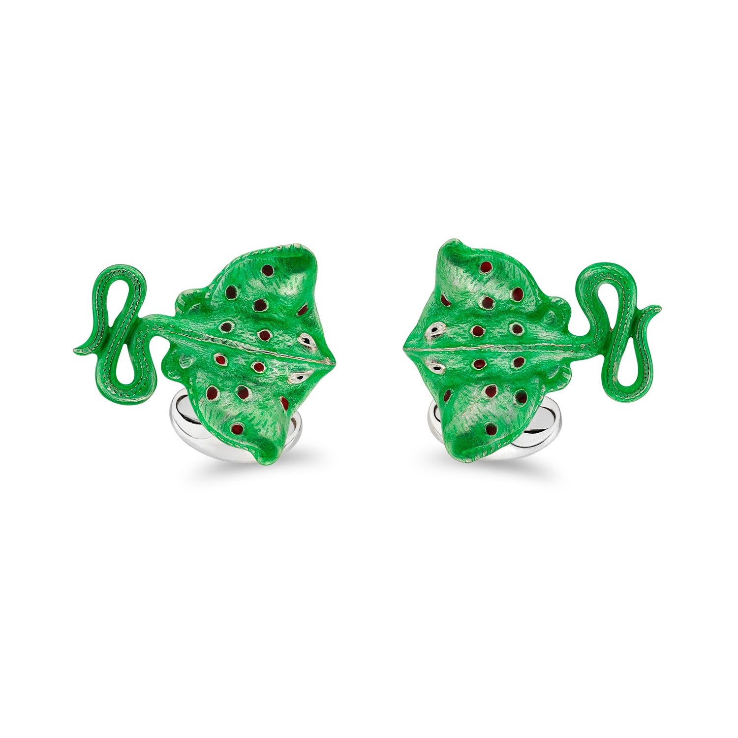 Add some sting to your style! We are growing our ocean inspired collection. These sterling silver stingray cufflinks are the latest addition. This easily distinctive fish known for gracefully gliding through the sea will gracefully glide its way to your shirt cuff. Finished in an enamel with realistic textures to pay homage to this beautiful sea creature. A wonderful gift for all ocean lovers.