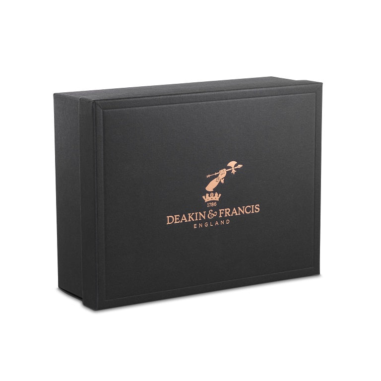 Our packaging adds an extra touch to every piece. To ensure the highest quality, each Deakin & Francis item comes beautifully wrapped in our elegant presentation box, accompanied by a signed guarante, offering you confidence in your purchase.