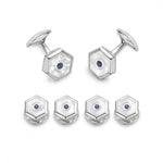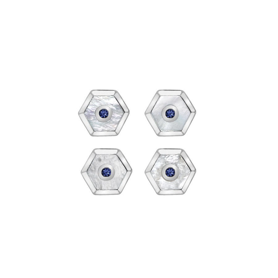 Sterling Silver Hexagonal Dress Stud Set - Mother-of-Pearl & Sapphire