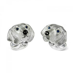 A beloved companion, the Hungarian Vizsla are loyal and highly affectionate dogs and these sterling silver cufflinks are sure to put a smile on your face! With stunning blue cabochon sapphire eyes, these handsome hounds are the perfect gentleman's companion.