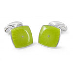 Bright, bold and and colourful. If you are looking for a sophisticated splash of colour, then look no further.Made from sterling silver, these cushion shaped cufflinks have been hand-enamelled in a stunning bright lime green finish. With a subtle waved pattern, the rich colour will add a beautiful contemporary finish to a classic white shirt.Here at Deakin & Francis we are masters in the art of vitreous enamelling, dating back to the Pharaohs, this is a highly specialised, hand skill. Every pair of green cufflinks is unique as it is hand-enamelled with care and precision.
