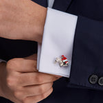 Saddle up for Royal Ascot, the Grand National or a day at Aintree with these beautiful red and white, hand-enamelled jockey cufflinks. Featuring a jockey that can move forward and backwards, these cufflinks will gallop their way onto your cuff. For horse owners, race goers and gambling enthusiasts, these sporty, sterling silver cufflinks are the perfect Christmas gift or memento to mark a special occasion.