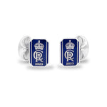 Sterling Silver Oblong Enamel Coronation Cufflinks - Blue Cufflinks