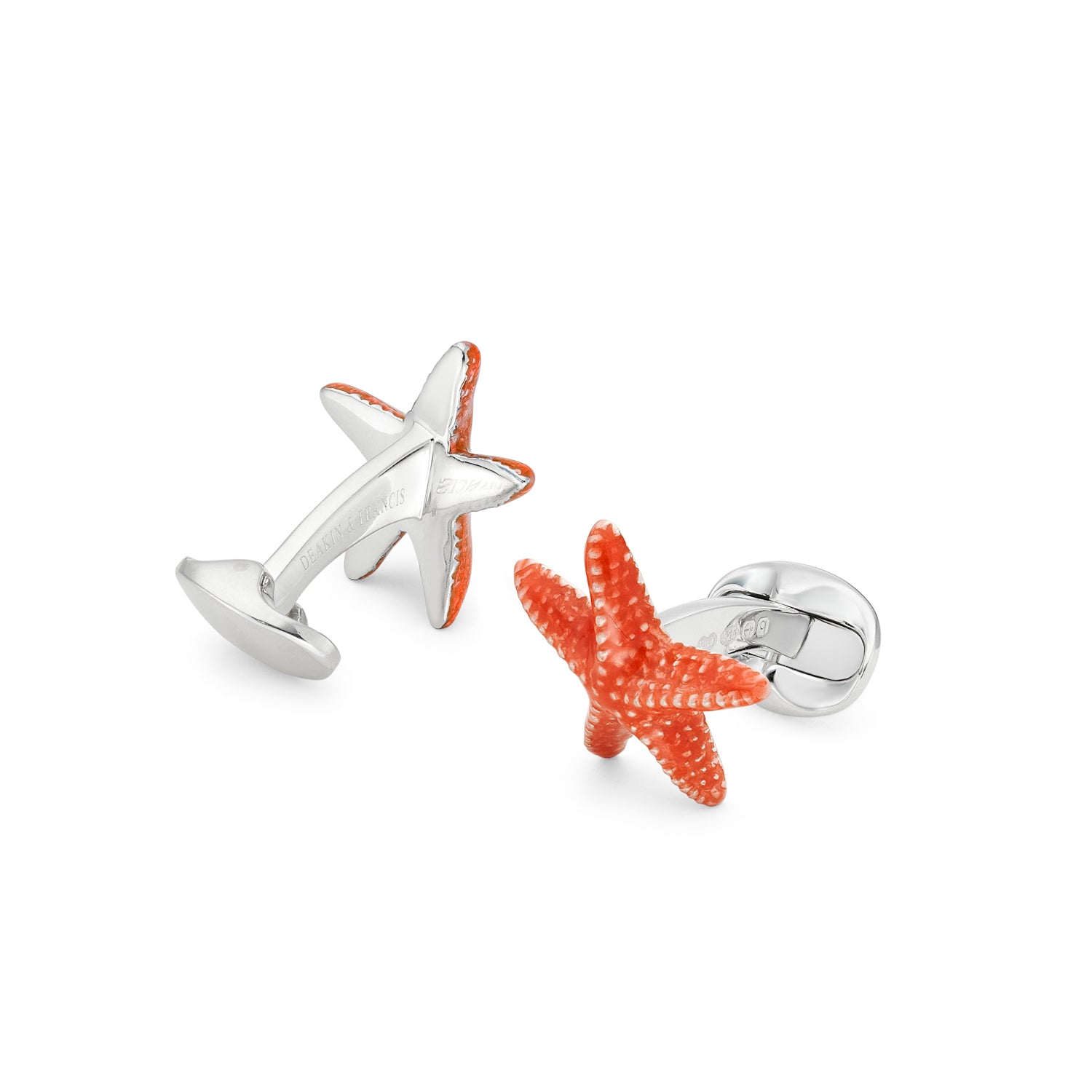 Sterling Silver Orange Enamelled Starfish Cufflinks