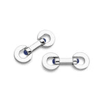 These classic sterling silver paddle design cufflinks are true elegance and perfect for any business attire. The subtle, delicate blue sapphires add a subtle hint of luxury and feature fetter link fittings.